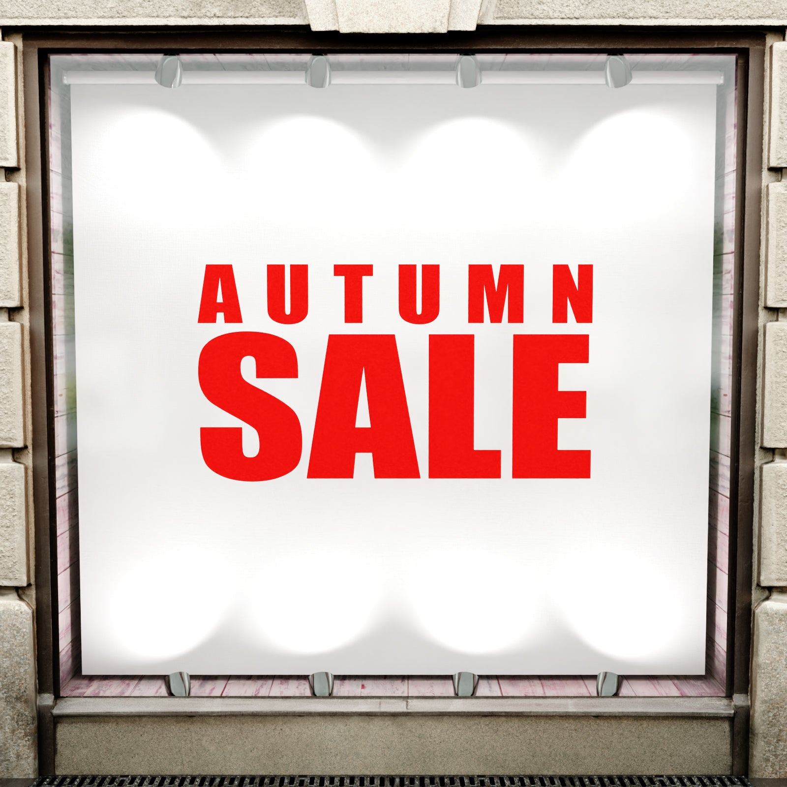 Get ready for the new season and promote your sale with this eye-catching 'Autumn Sale' window or wall sticker.