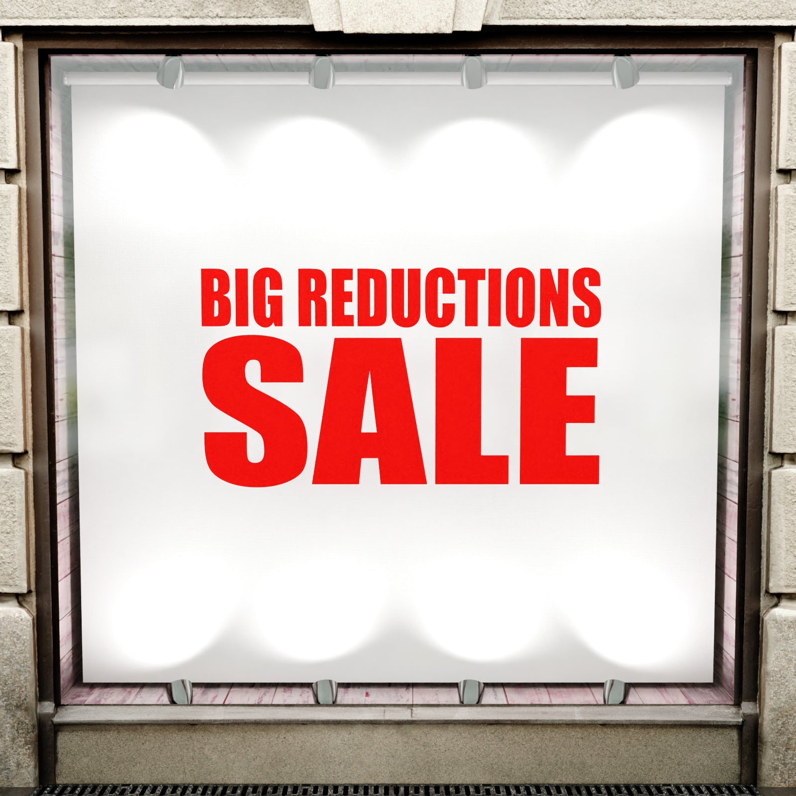 Promote your sale with this eye-catching 'Big Reductions Sale' window or wall sticker.