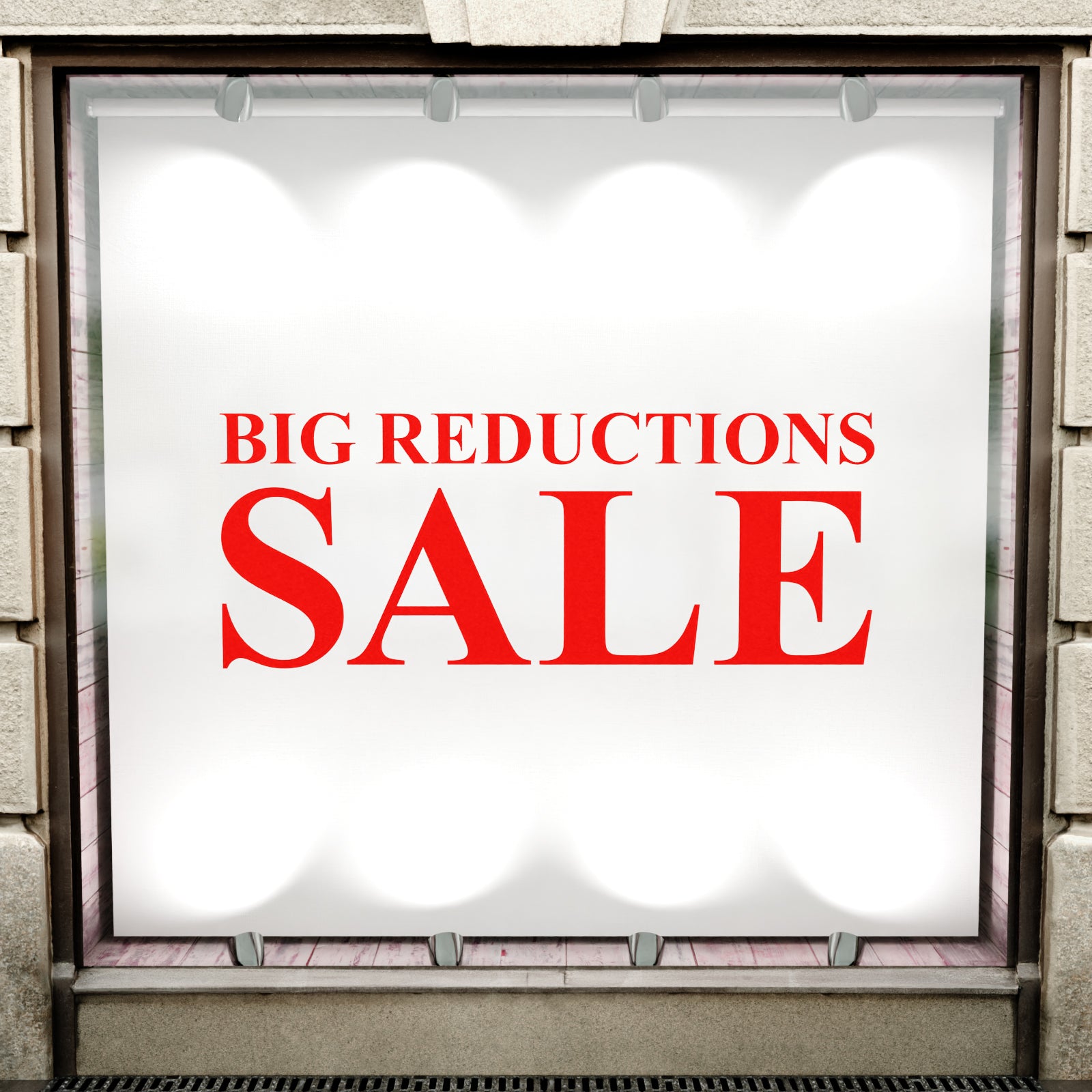 Promote your sale with this eye-catching 'Big Reductions Sale' window or wall sticker.