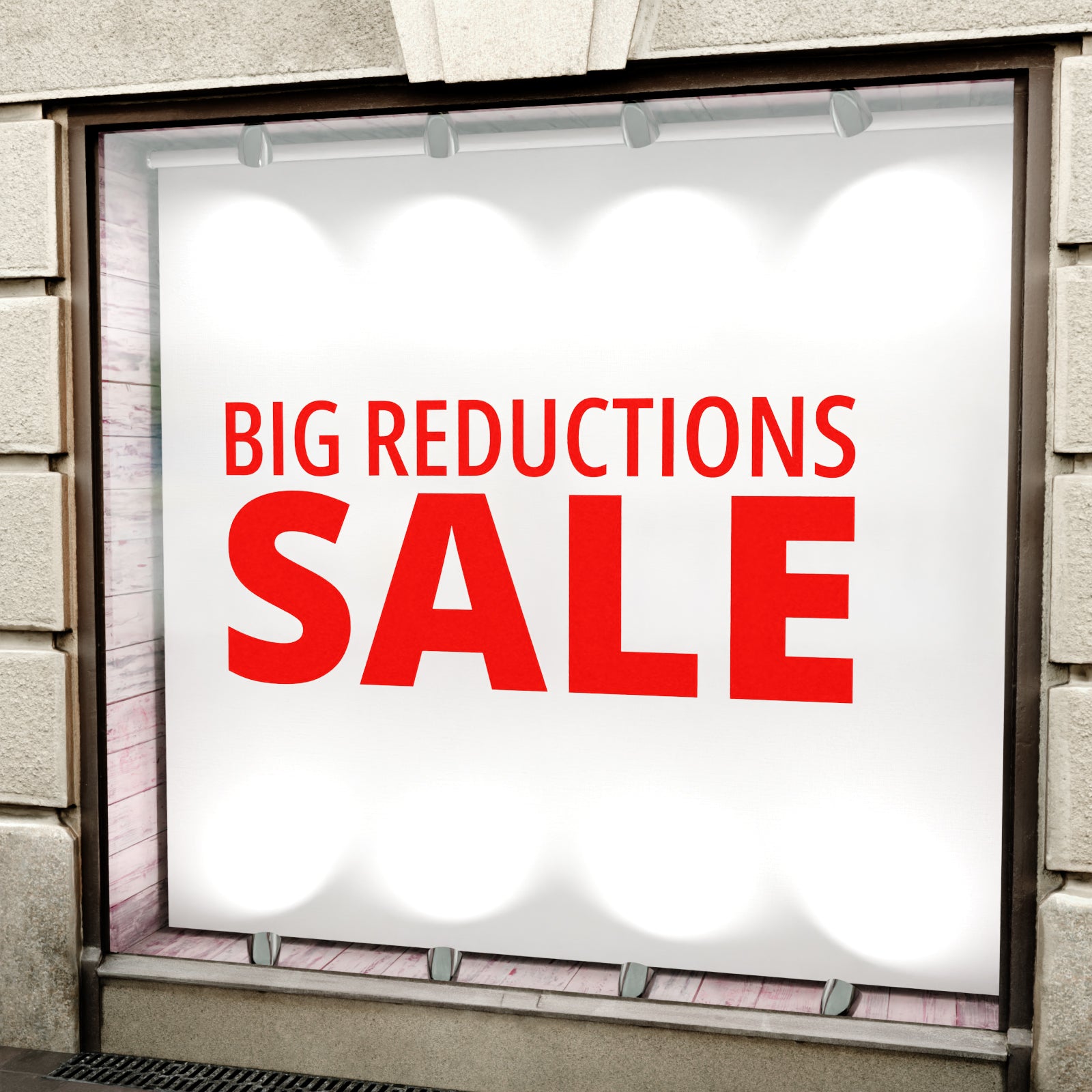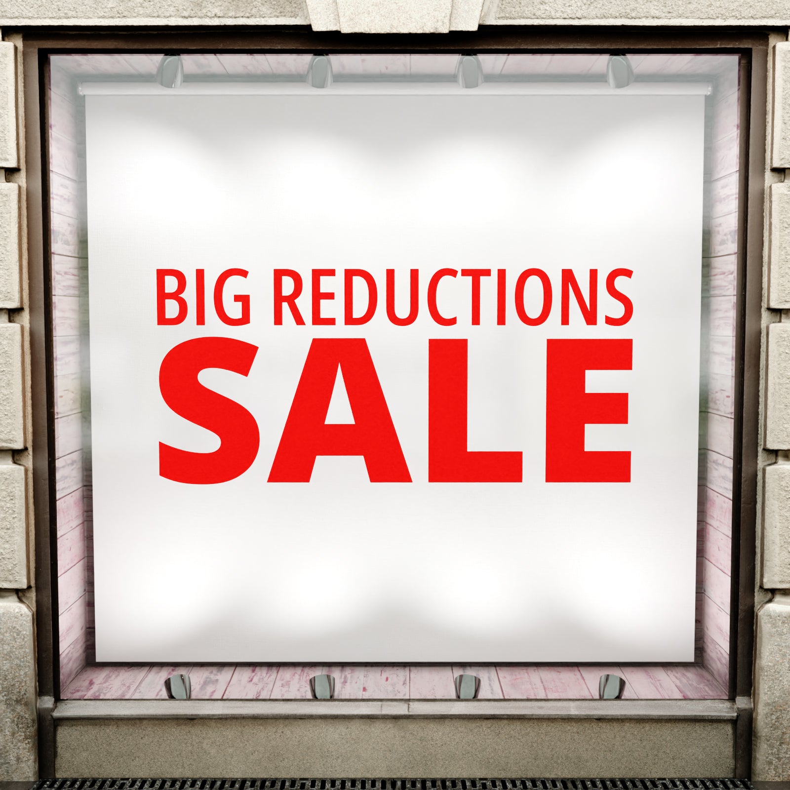 Promote your sale with this eye-catching 'Big Reductions Sale' window or wall sticker.
