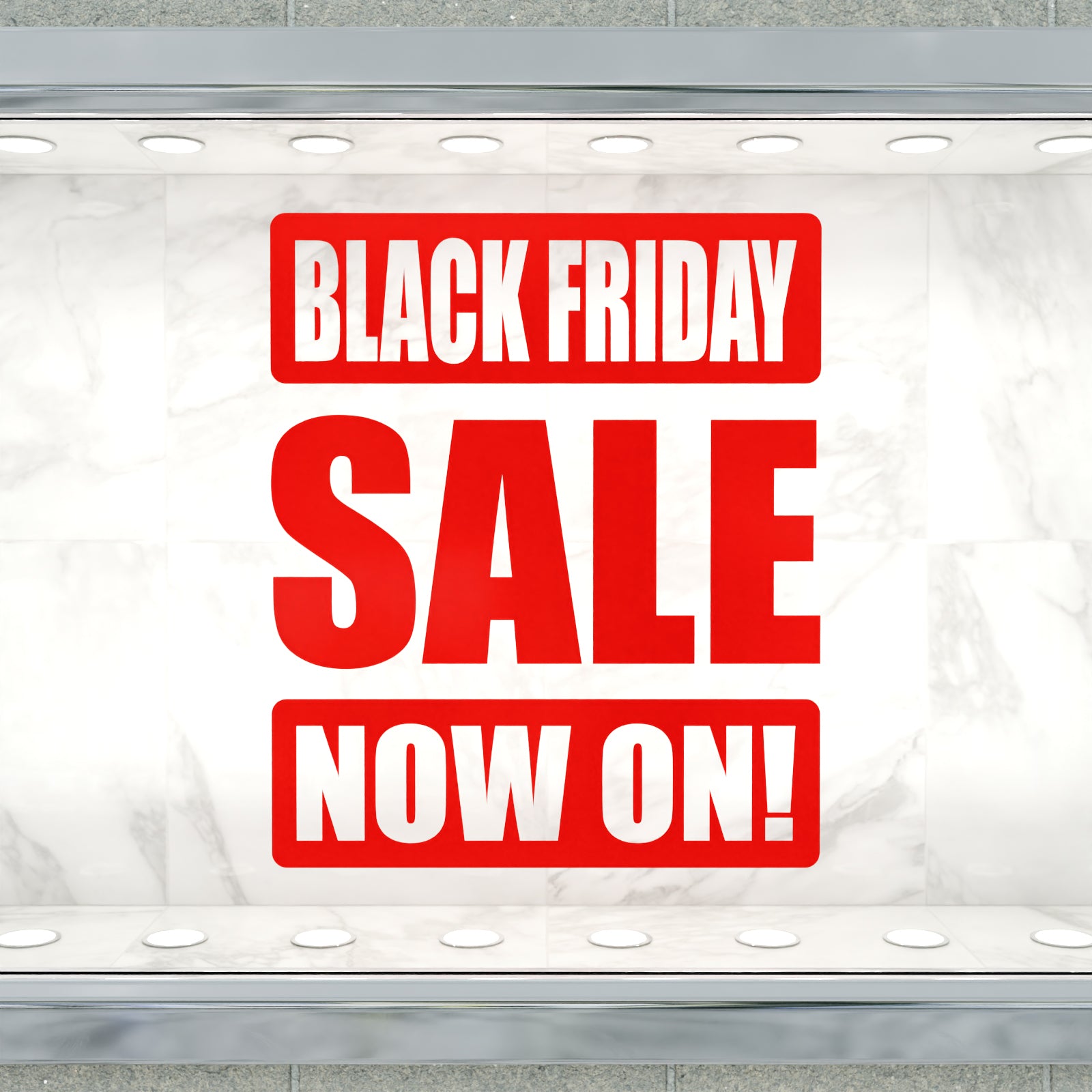Mark the start of the Christmas shopping season with this eye-catching 'Black Friday Sale Now On!' window or wall sticker.