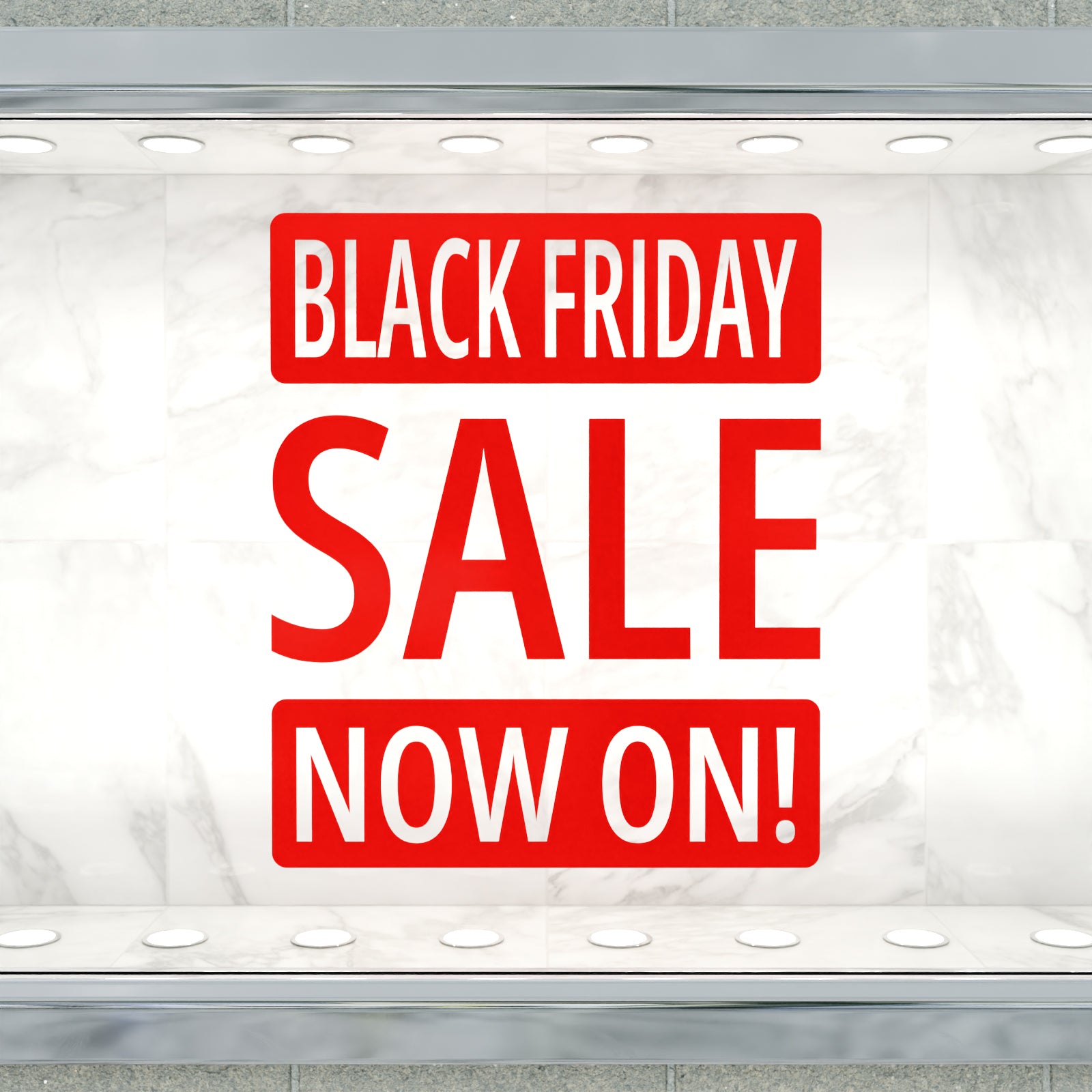 Mark the start of the Christmas shopping season with this eye-catching 'Black Friday Sale Now On!' window or wall sticker.