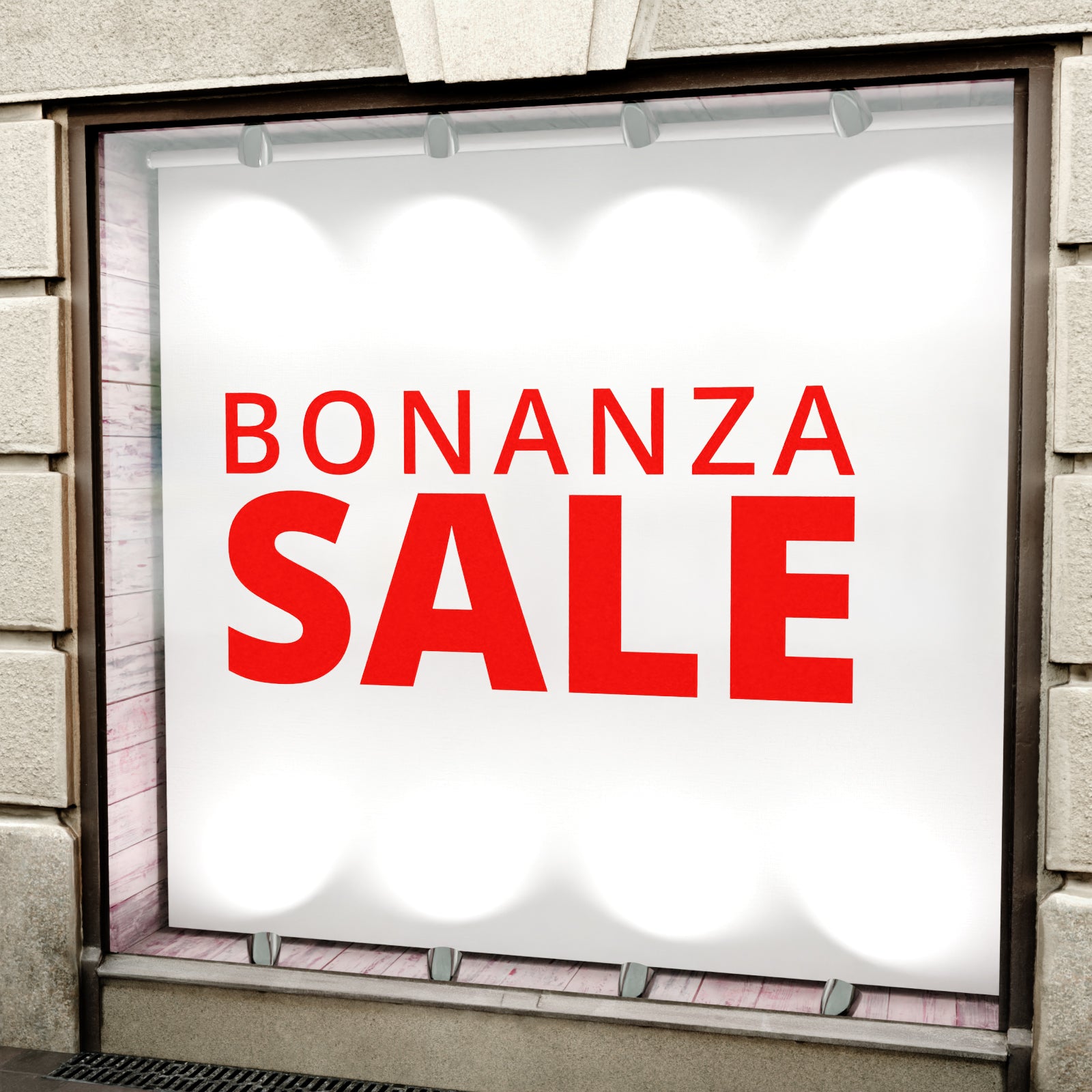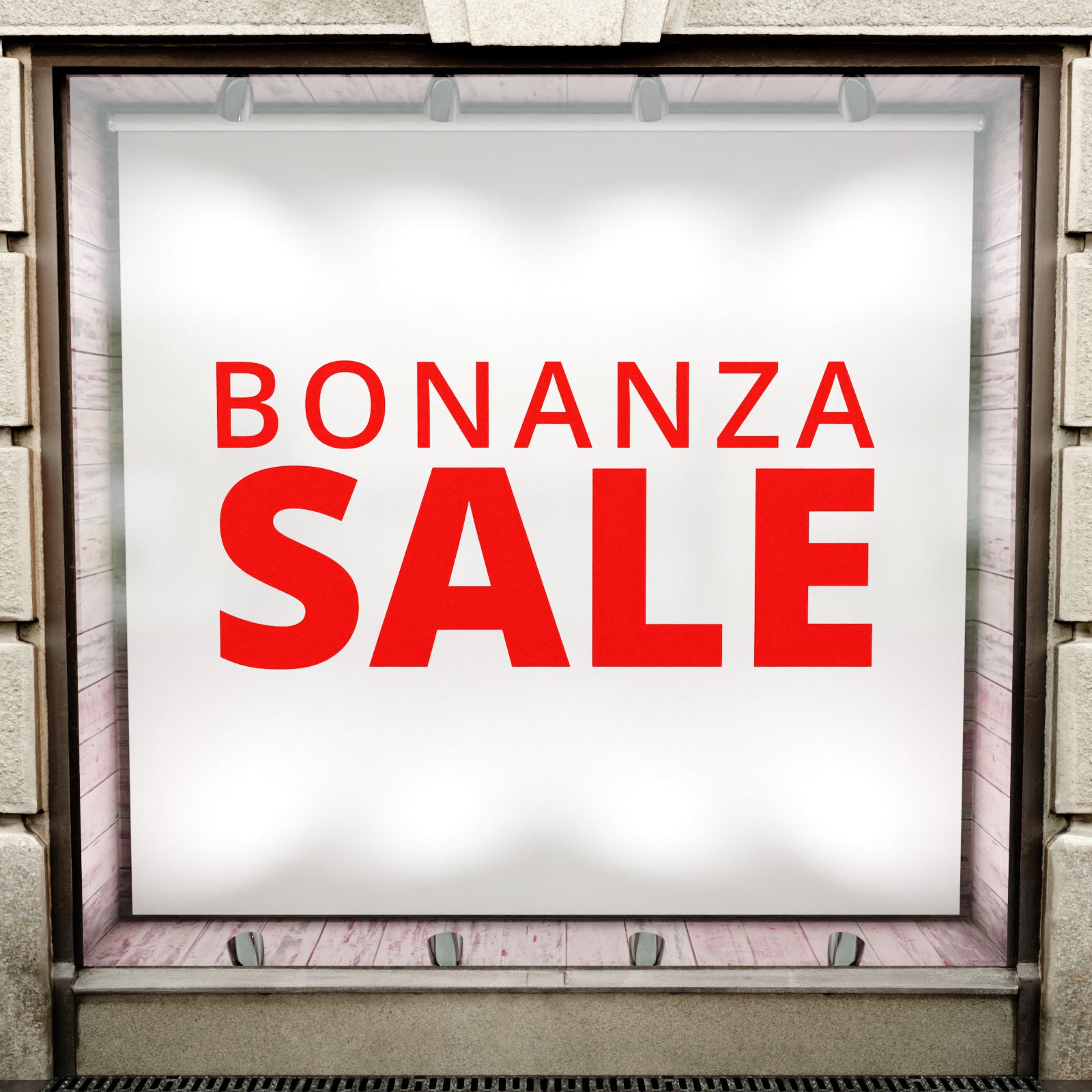 Promote your sale with this eye-catching 'Bonanza Sale' window or wall sticker.