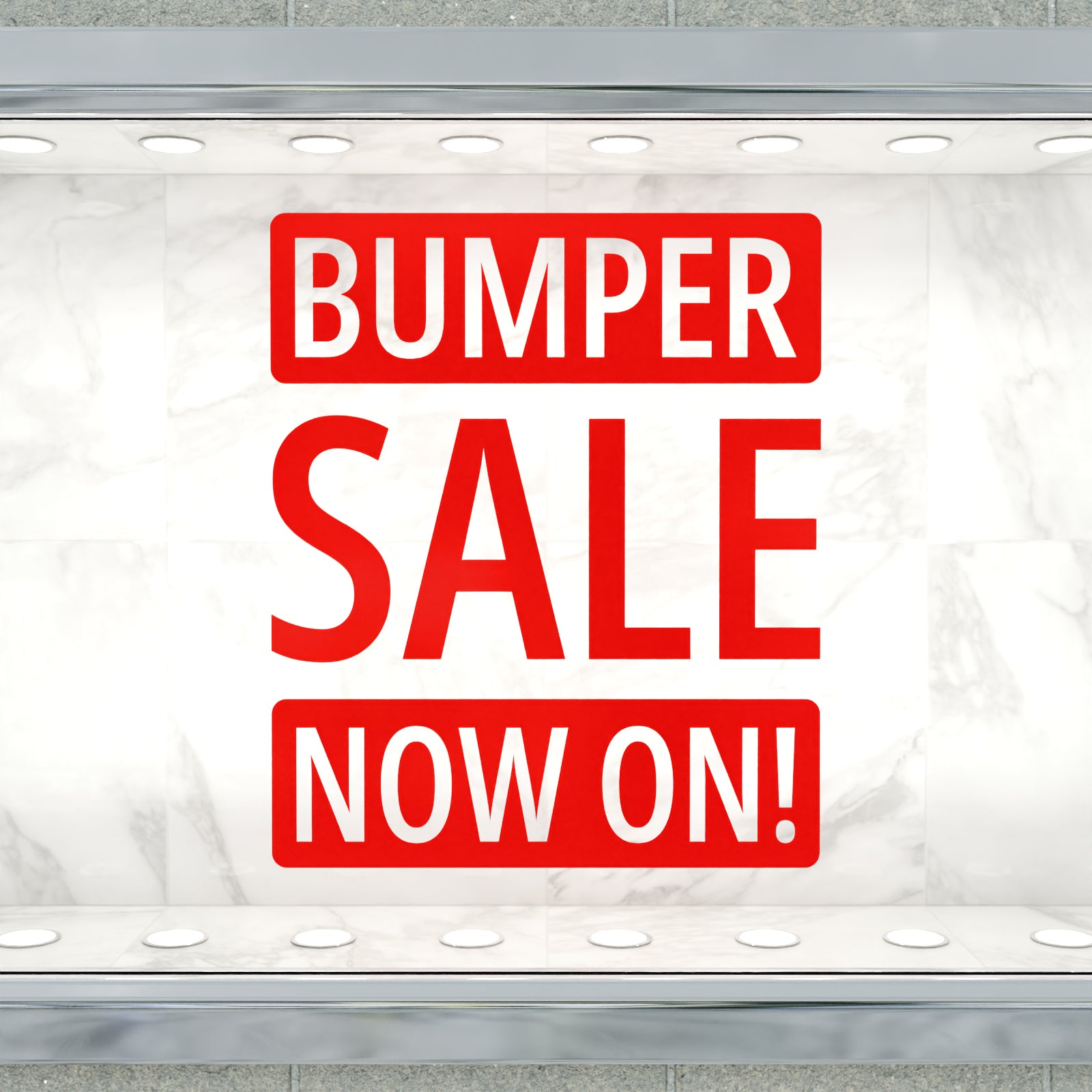 Promote your sale with this eye-catching 'Bumper Sale Now On!' window or wall sticker.