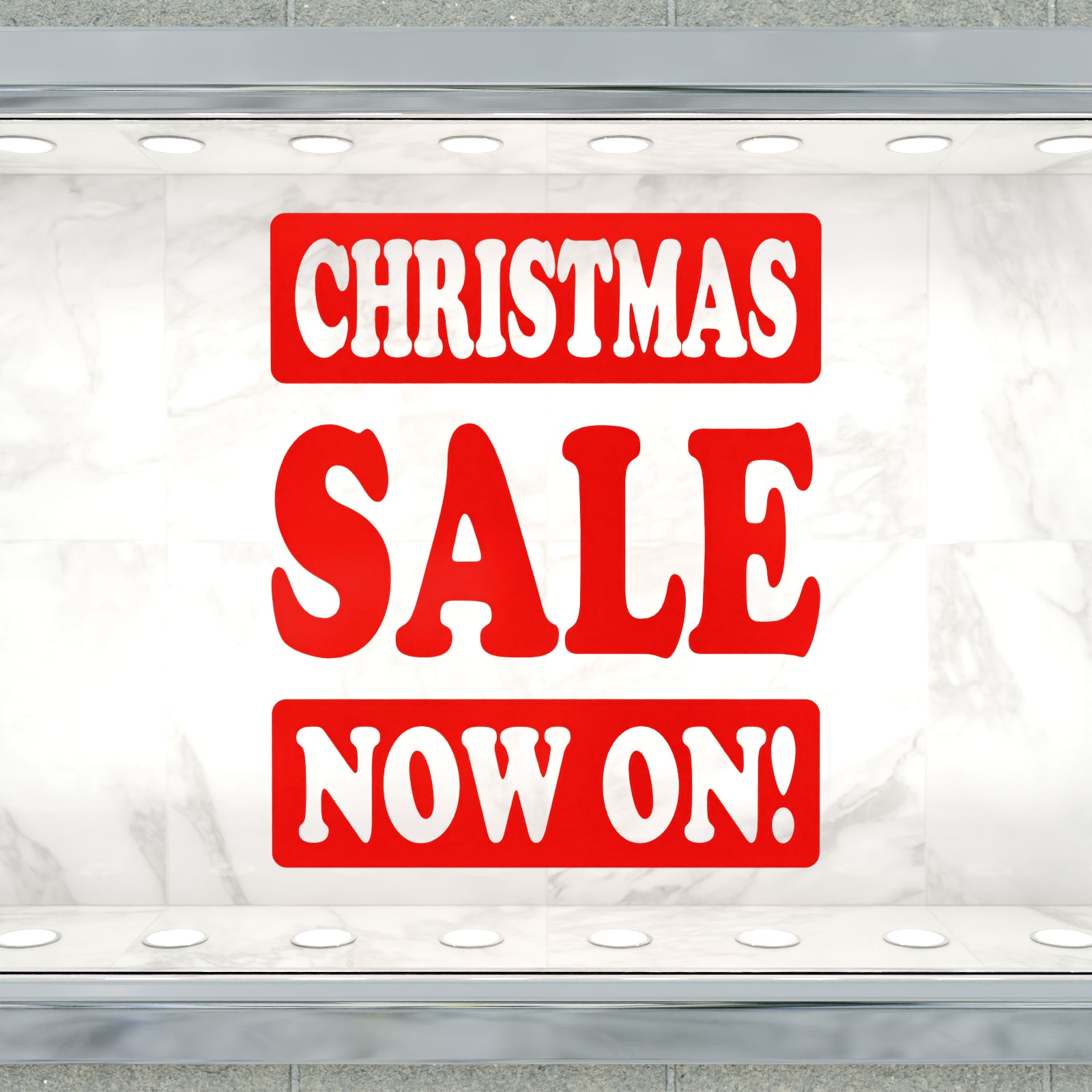 Get ready for Xmas and promote your sale with this eye-catching 'Christmas Sale Now On!' window or wall sticker.