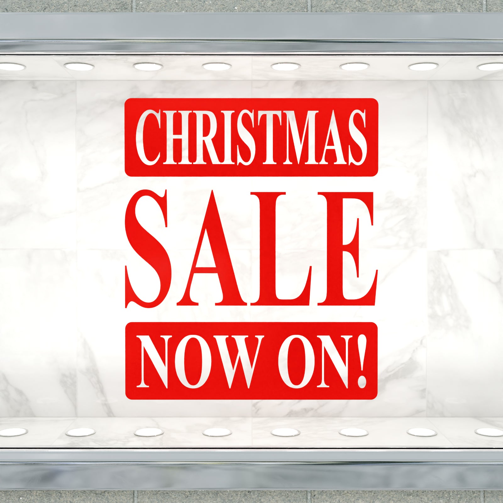 Get ready for Xmas and promote your sale with this eye-catching 'Christmas Sale Now On!' window or wall sticker.
