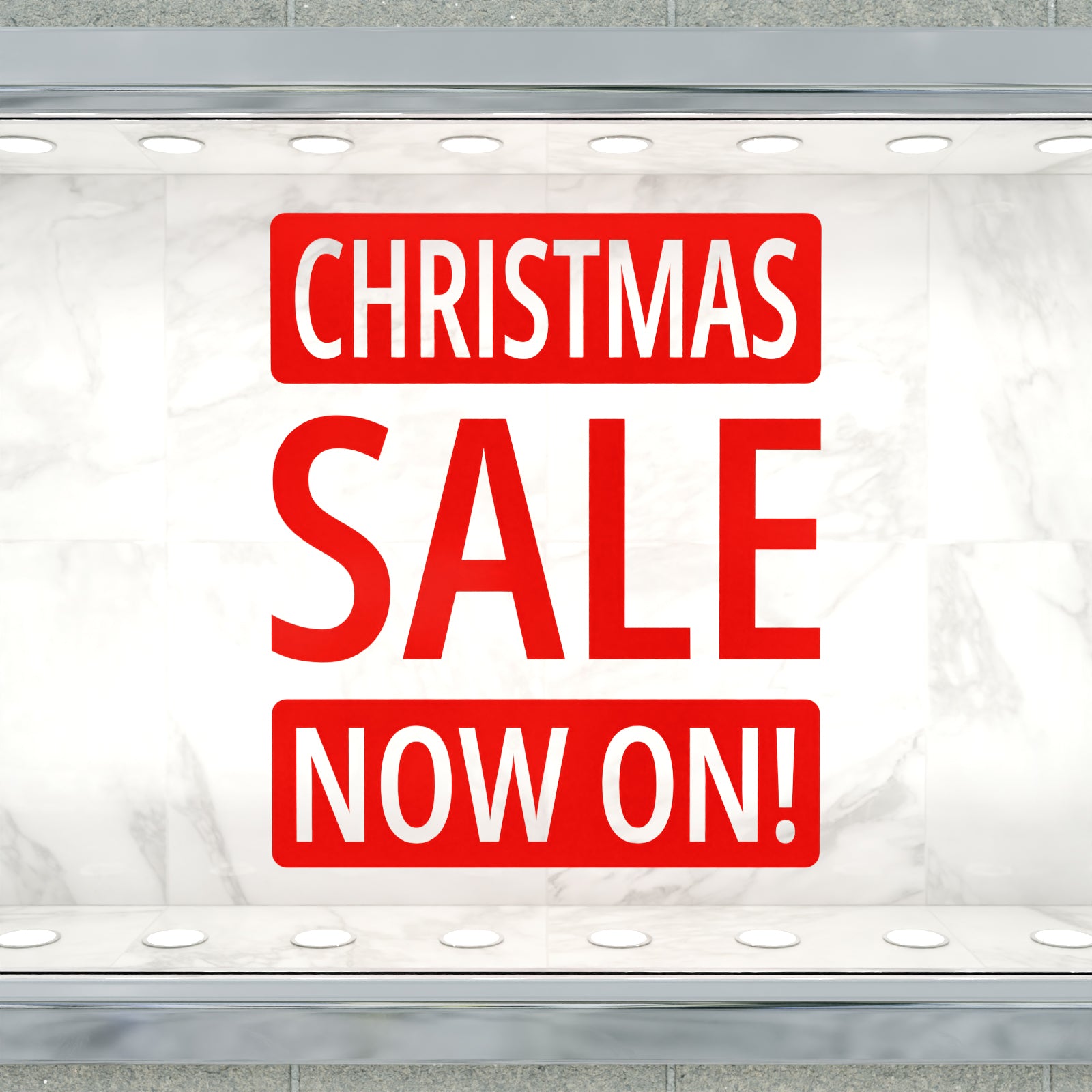 Get ready for Xmas and promote your sale with this eye-catching 'Christmas Sale Now On!' window or wall sticker.