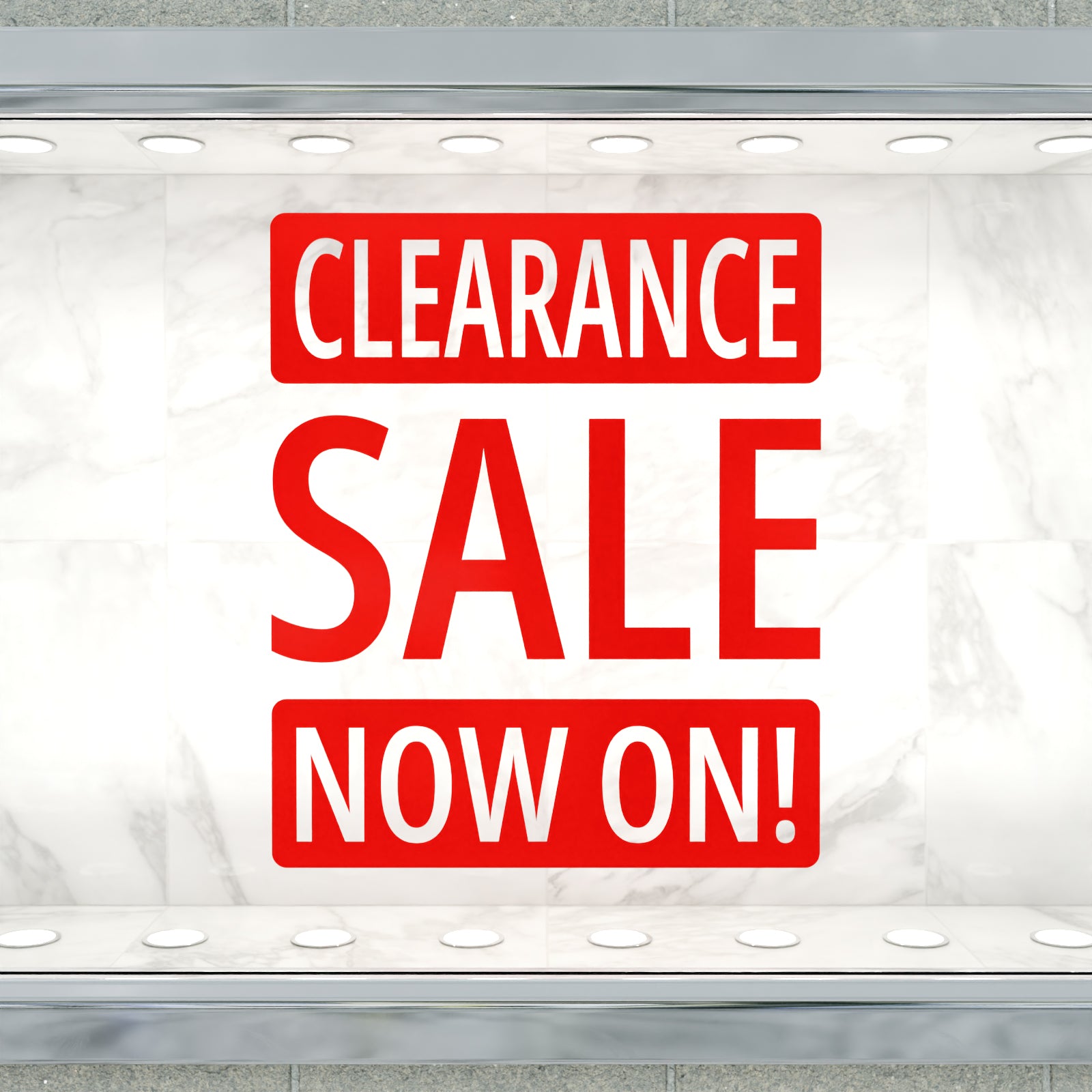 Promote your sale with this eye-catching 'Clearance Sale Now On!' window or wall sticker.