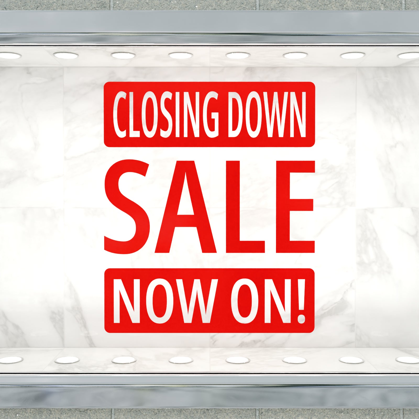 Sell as much stock as possible with this eye-catching 'Closing Down Sale Now On!' window or wall sticker.
