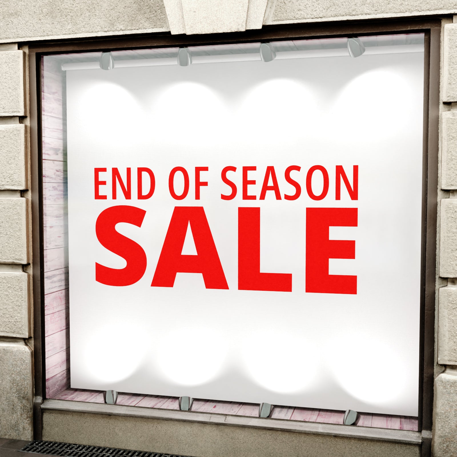 Promote your sale and shift old stock with this eye-catching 'End Of Season Sale' window or wall sticker.