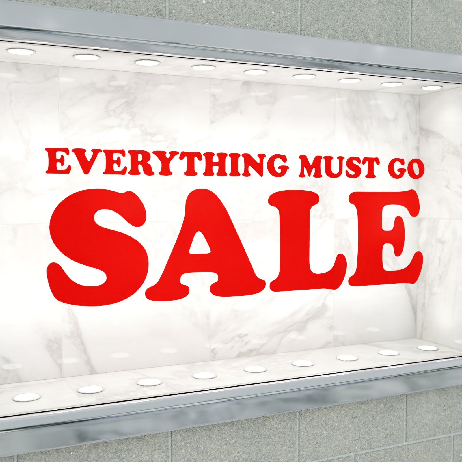 Clear out that old stock with this eye-catching 'Everything Must Go Sale' window or wall sticker.