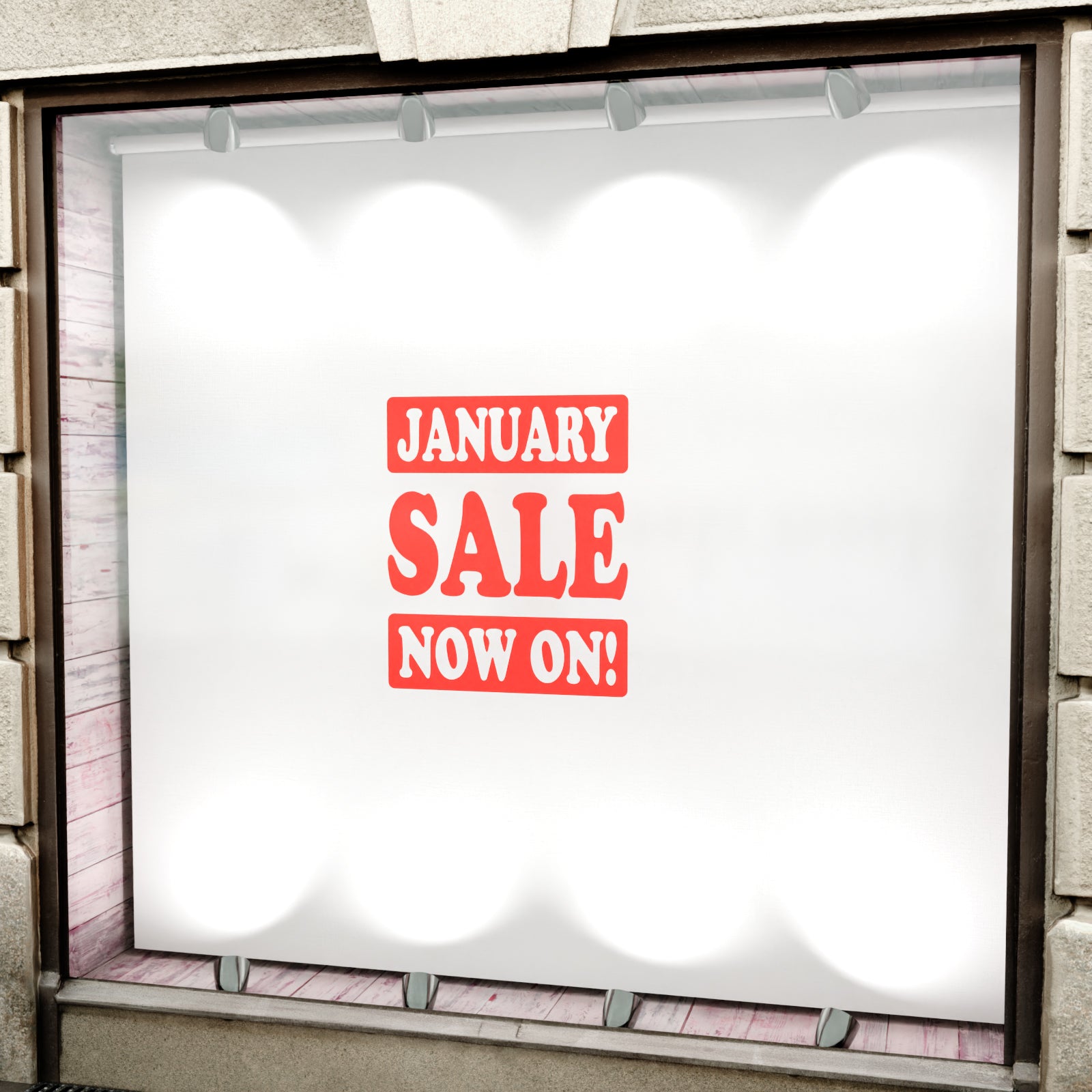 Start the new year with a bang and promote your sale with this eye-catching 'January Sale Now On!' window or wall sticker.