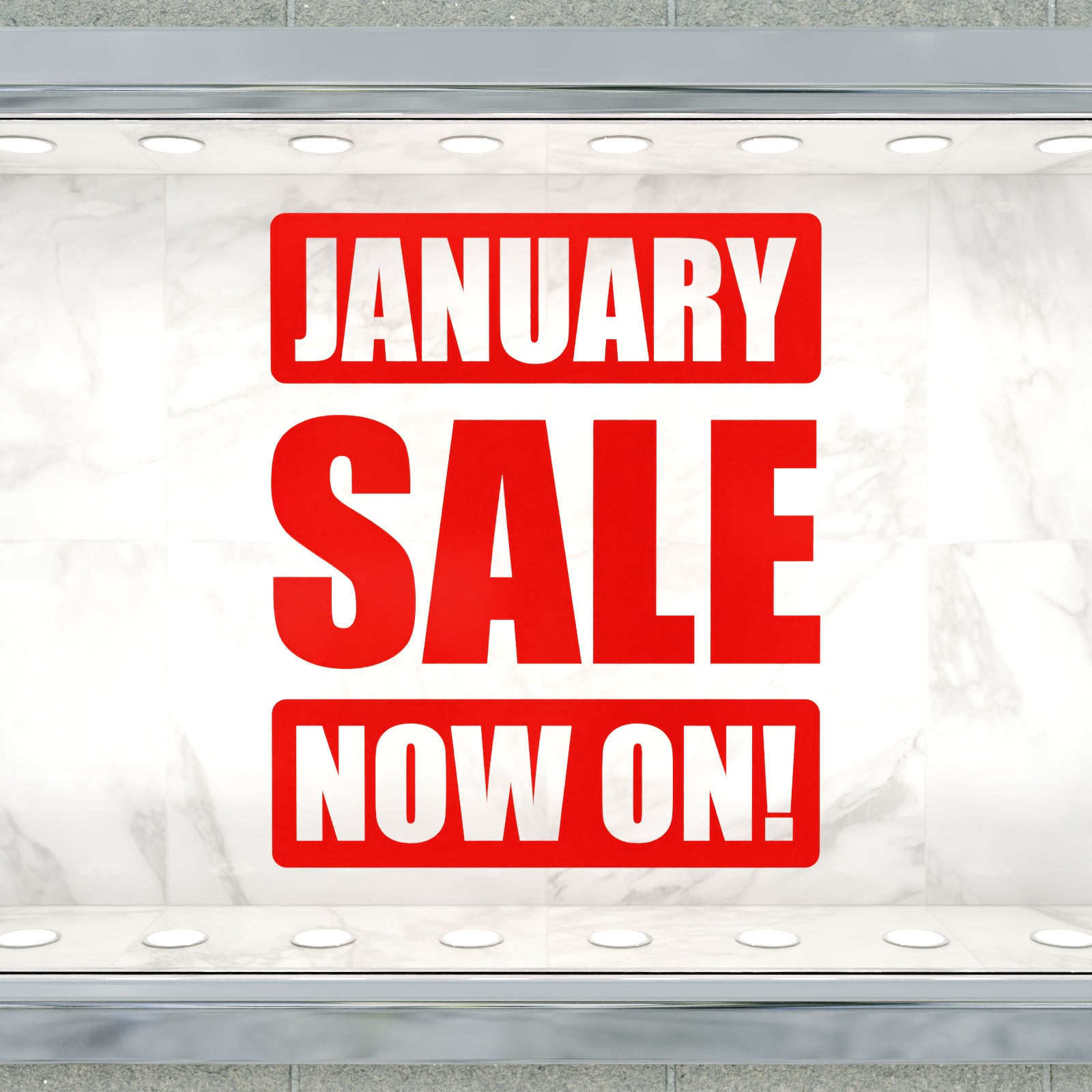 Start the new year with a bang and promote your sale with this eye-catching 'January Sale Now On!' window or wall sticker.