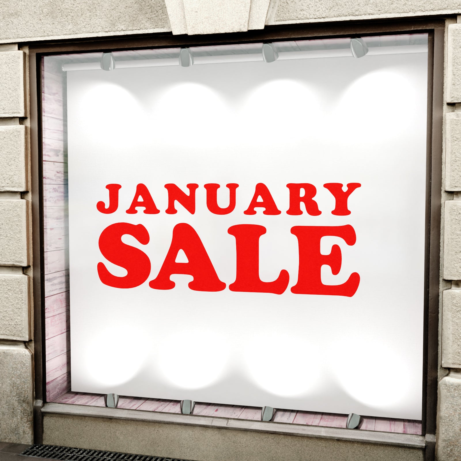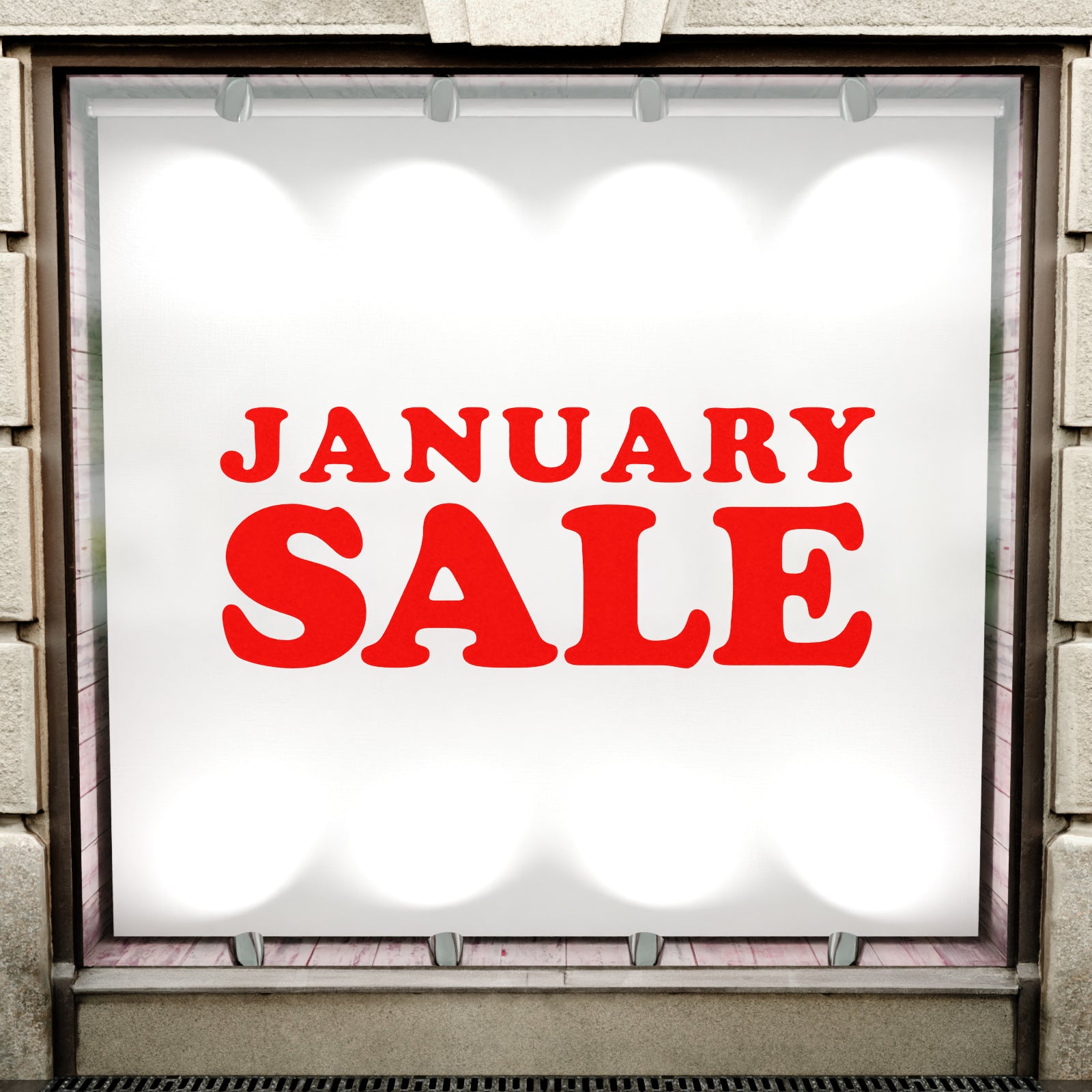Start the new year with a bang and promote your sale with this eye-catching 'January Sale' window or wall sticker.