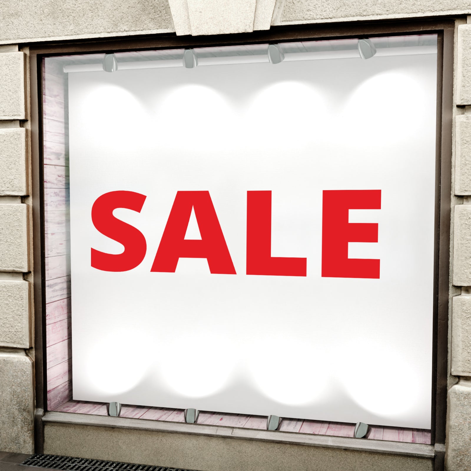 Promote your sale and clear your old stock with this eye-catching 'Sale' window or wall sticker.