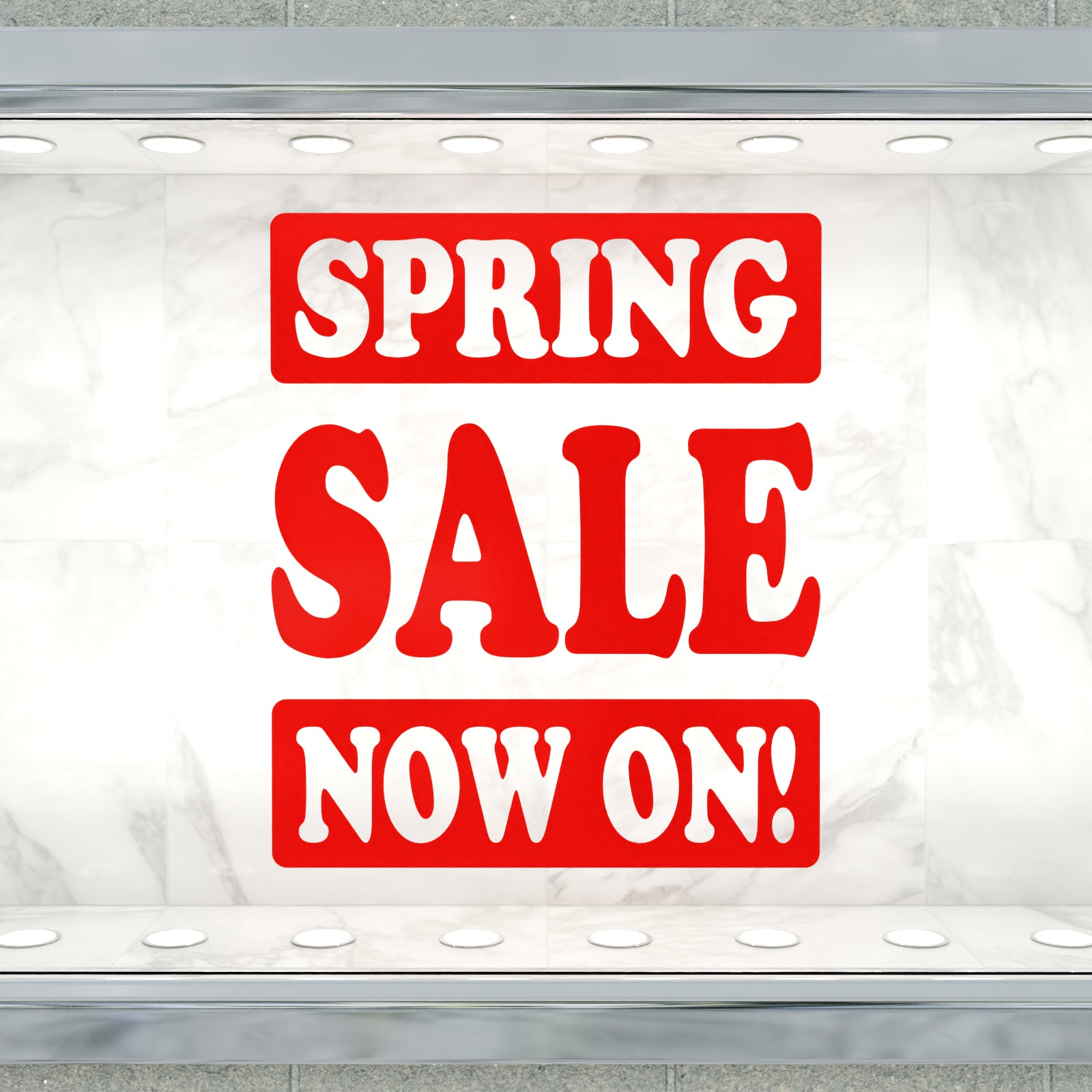 Get ready for the new season and promote your sale with this eye-catching 'Spring Sale Now On!' window or wall sticker.