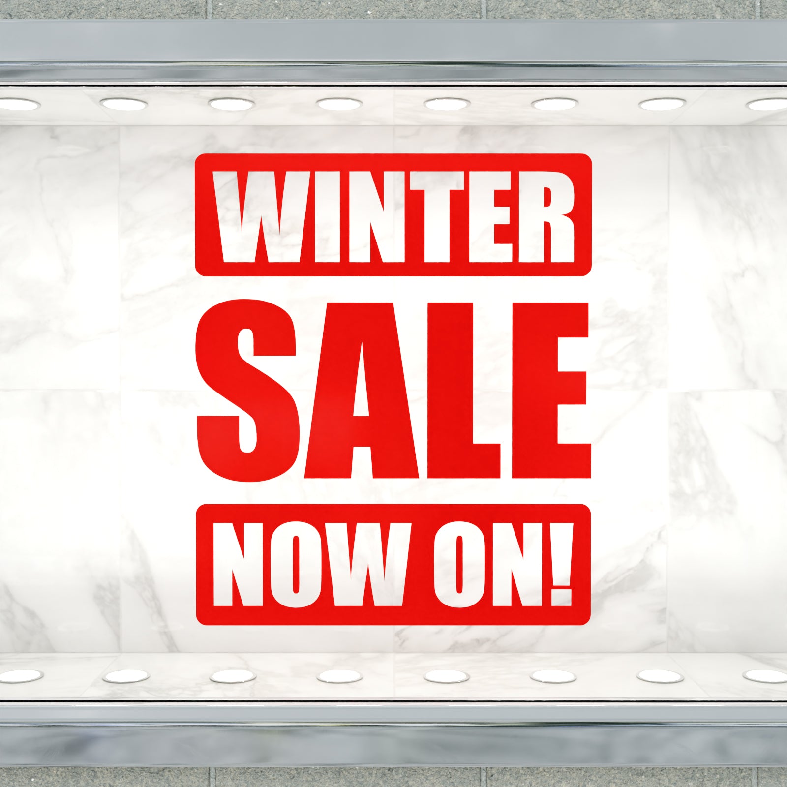 Get ready for the new season and promote your sale with this eye-catching 'Winter Sale Now On!' window or wall sticker.